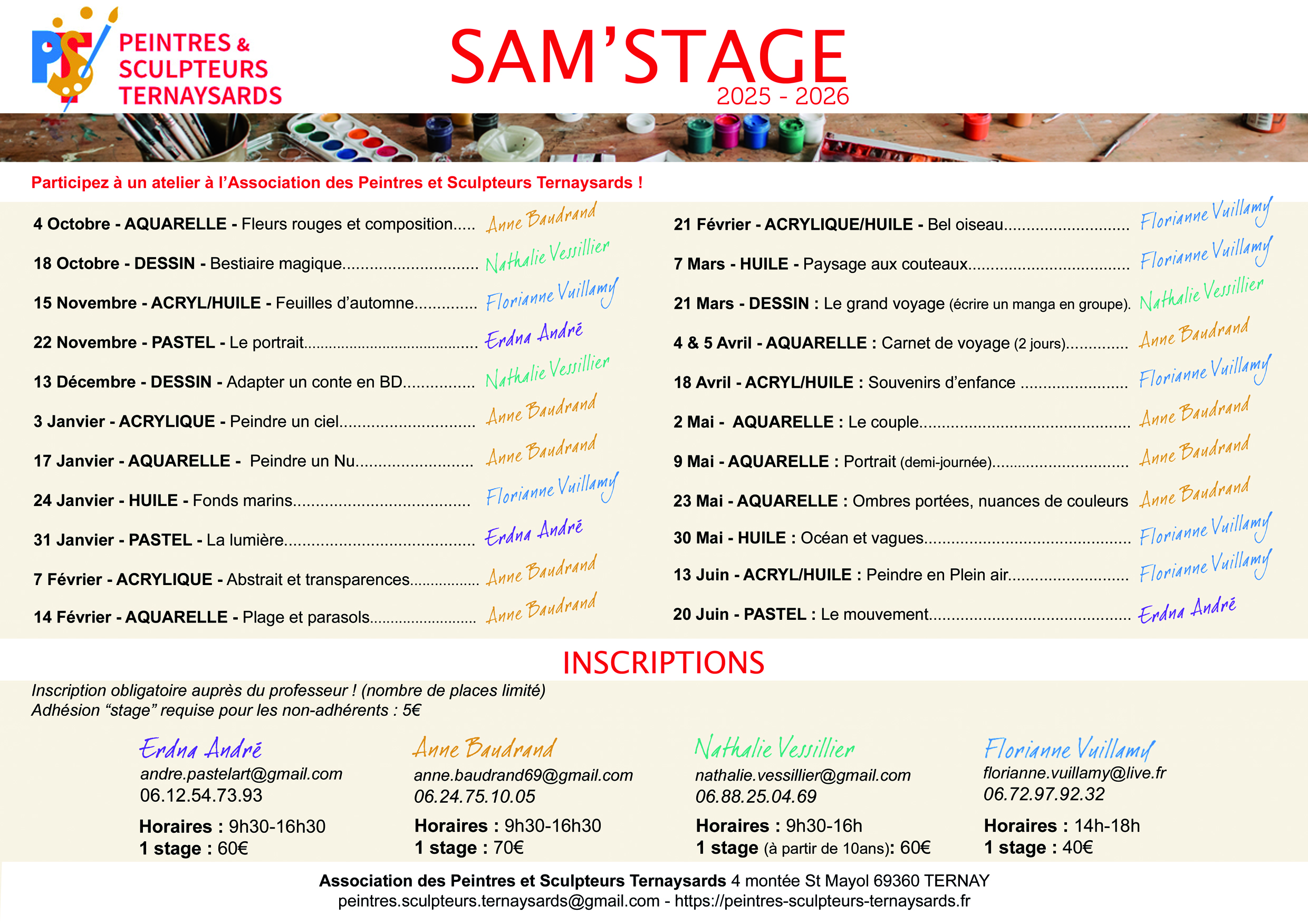 Voici le planning des thèmes et techniques traités en 2025-26, et les conditions d’inscription :